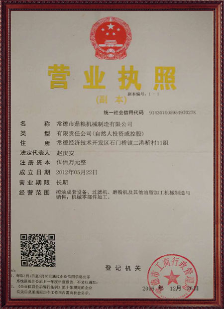 常德市鼎糧機械製造有限公司,原常德市鼎城糧油機械廠,是國內較早從事液壓壓榨機、壓濾機、固液分離機的廠家之一,提供液壓榨油、固液分離、液固分離全套解決方案,產品及谘詢方案在油脂壓榨製取、生物柴油提取、化工除液、中藥材脫液、食品提液中得到了廣泛應用。